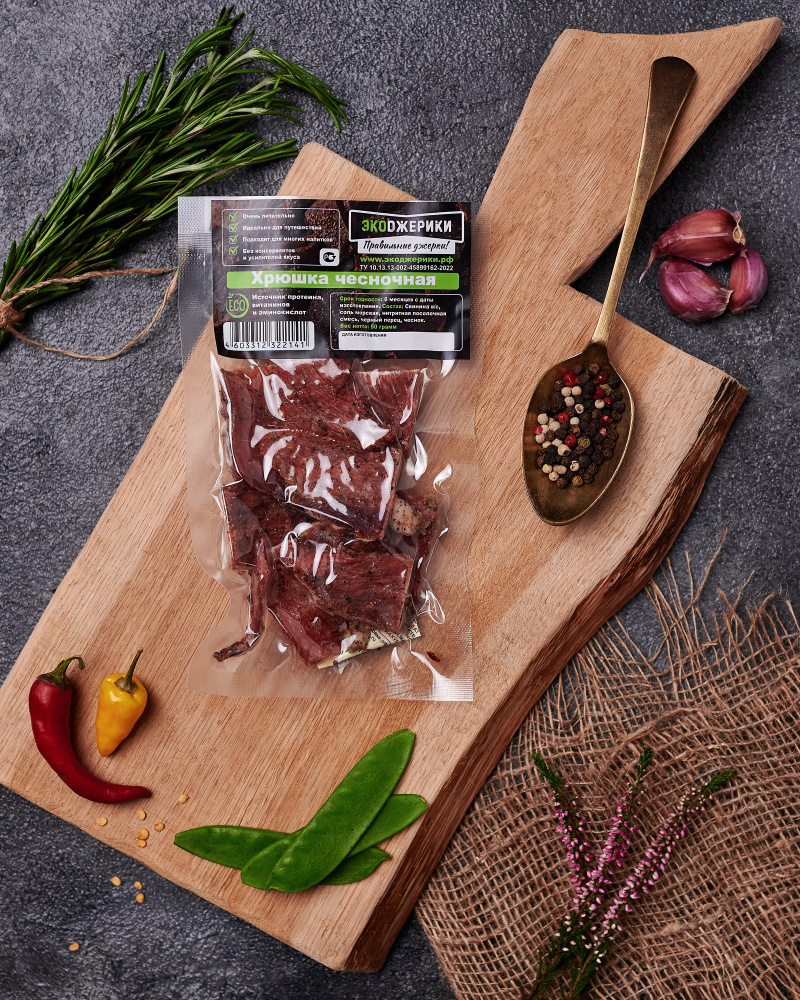 Джерки мясные «Хрюшка чесночная» - сыровяленые ломтики сделаны из свежего свиного филе корейки, карбонада с минимальными прожилками жира. Эти мясные ломтики станут как идеальным дополнением к бокалу пенистого, так и выступят в качестве самостоятельного полезного перекуса, способного поднять настроение во время вечернего отдыха. Удобно взять в дорогу, поход или подкрепиться после тренировки! Ломтики представляют собой тонко нарезанные и подсушенные кусочки мяса с ароматными специями! Технология изготовления позволяет максимально сохранить весь комплекс витаминов и минеральных веществ! Таких, как: В1, B2, B5, B6, B12, E, фосфор, калий, магний, цинк и другие!