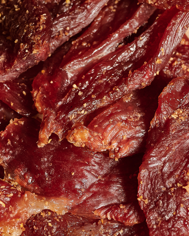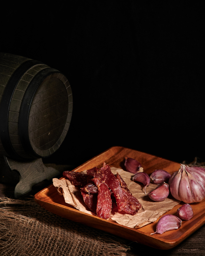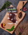 Джерки мясные Индейка «Без поцелуев» - это гармоничное сочетание специй и пряностей с  ароматом чеснока. Готовятся из диетической бедренной части индейки, с низким содержанием жира. Высокие стандарты производства и бережная сушка в современных дегидраторах обеспечивают вкусный, безопасный, а главное абсолютно натуральный продукт.  В наших джерках содержится 100% натуральное мясо, без консервантов и усилителей вкуса, без гмо и глютена, в них содержатся специи и много белка. Снэки упакованы в вакуумный пакет, что обеспечивает длительную сохранность продукта в первоначальном виде. Удобно взять с собой в путешествие, поездку, поход или на работу. Это идеальный низкоуглеводный перекус в течение дня, источник сил и энергии. Это вкусная и полезная закуска к выдержанным напиткам вечером: крафтовому пиву, вину. Это отличный подарок ценителям, гурманам и любителям мясоедам. Удивляйте и радуйте любимых вкусным вяленым мясом!  Мясные джерки бренда «Экоджерики» - это качество и разнообразие вкусов, для настоящих ценителей изысканных закусок и полезных перекусов.