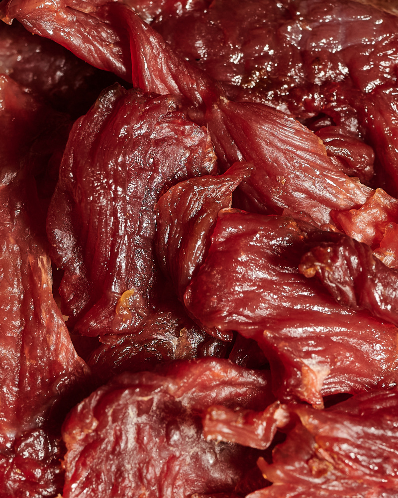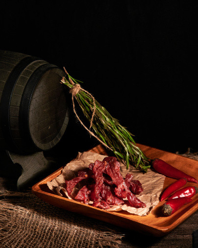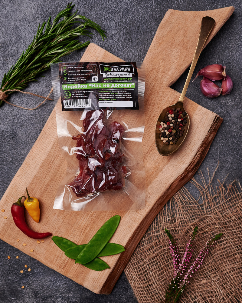 Джерки мясные «Нас не догонят» - изготовлены из диетической бедренной части индейки, с низким содержанием жира. Ломтики представляют собой тонко нарезанные и подсушенные кусочки мяса с ароматными специями! Снеки упакованны в вакуумный пакет, что обеспечивает длительную сохранность продукта в первоначальном виде. Технология изготовления позволяет максимально сохранить весь комплекс витаминов и минеральных веществ! Таких, как: В1, B2, B5, B6, B12, E, фосфор, калий, магний, цинк и другие. Эти мясные ломтики станут как идеальным дополнением к бокалу пенистого, так и выступят в качестве самостоятельного полезного перекуса, способного поднять настроение во время вечернего отдыха. Их можно взять в дорогу, поход или подкрепиться после тренировки. Богатые белком ломтики, удобны в любой ситуации! Отличный вариант для тех кто следит за своим питанием.
